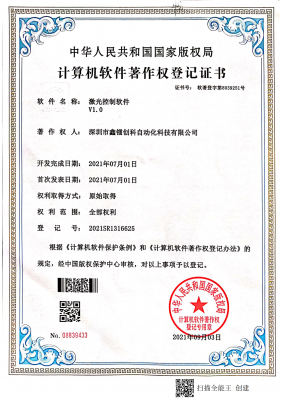 著作权登记证书-激光控制软件